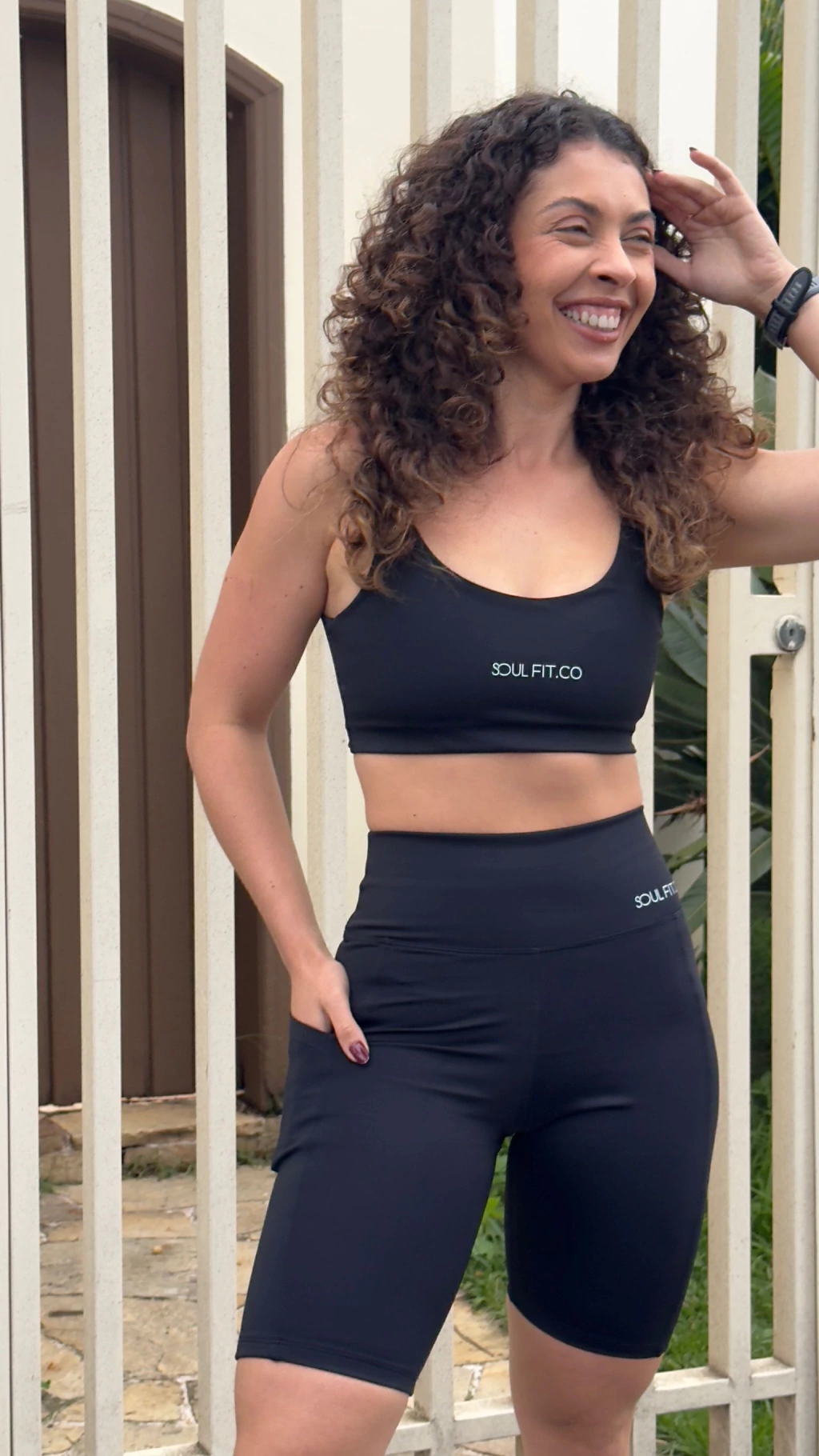 Shorts com cós alto, costuras que valorizam a silhueta e bolso lateral, ideal para acomodar itens essenciais como celular ou chaves com total praticidade. Confeccionada em tecido de média compressão com proteção solar UV 50+, é perfeita para quem busca performance e utilidade na peça.